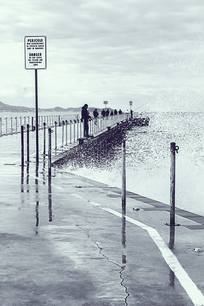 Fisherman with rough sea